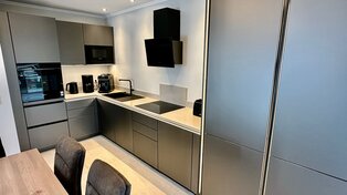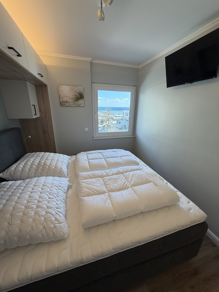 Vom Wohnzimmer, der offenen Design-Küche und beiden Schlafzimmern genießen Sie einen fantastischen Blick auf das Meer und die Promenade. Beobachten Sie, wie die Sonne im Wasser glitzert oder die Segelboote in den Hafen einlaufen – pure Entspannung!