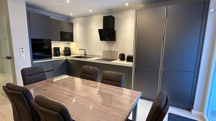 Das Penthouse 2 in Grömitz vereint Luxus, Design und höchsten Komfort. Jede Ausstattung ist auf Qualität und Wohlfühlatmosphäre ausgelegt – von der edlen Designküche über die Wellness-Bäder bis hin zum großzügigen Balkon mit Meerblick. Hier erleben Sie Wohnkomfort auf 5-Sterne-Niveau – stilvoll, durchdacht und bis ins Detail perfekt ausgestattet.