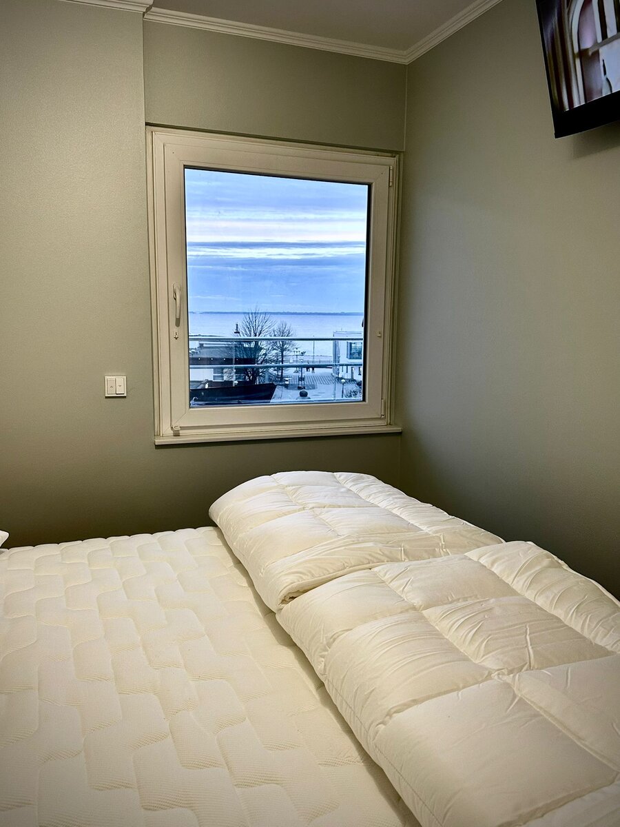 Vom Wohnzimmer, der offenen Design-Küche und beiden Schlafzimmern genießen Sie einen fantastischen Blick auf das Meer und die Promenade. Beobachten Sie, wie die Sonne im Wasser glitzert oder die Segelboote in den Hafen einlaufen – pure Entspannung!